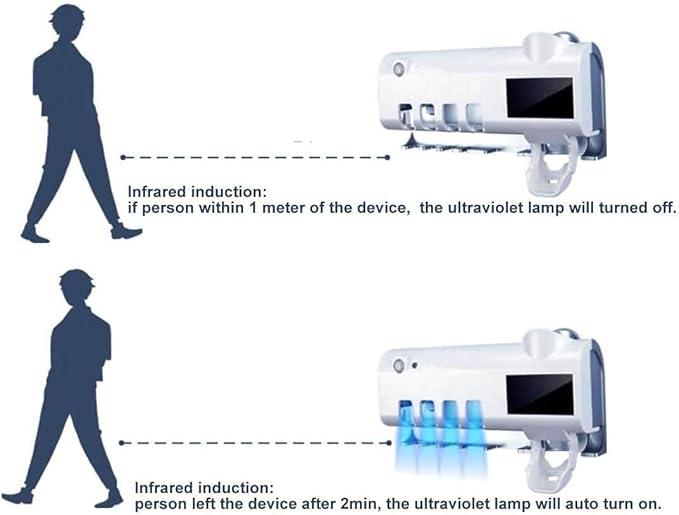 3-in-1 Intelligent Photosensitive Toothpaste Dispenser | Wall Mounted USB Rechargeable Solar Power Toothbrush Holder (White)