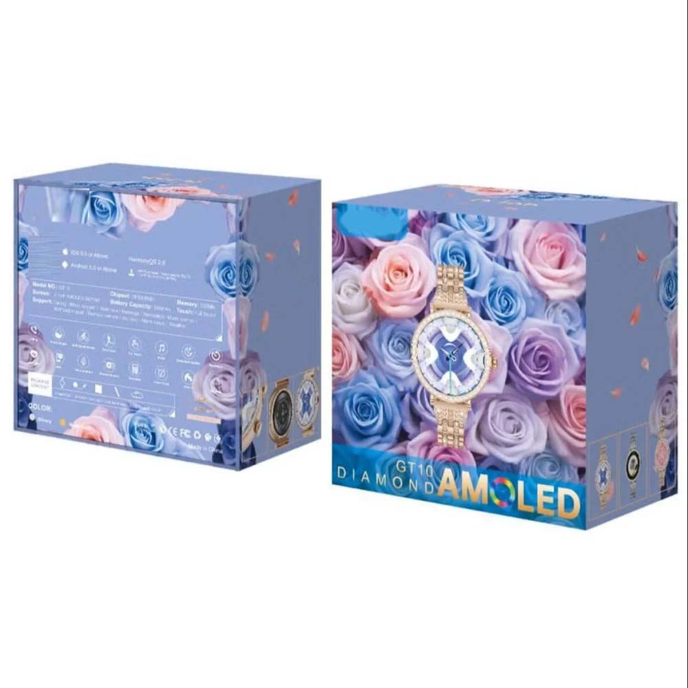 GT10 Diamond Smartwatch | 1.2" AMOLED Display | Heart Rate, Sleep, and Menstrual Tracking | Compatible with Android & iOS | Elegant, High-Performance Smartwatch for Women