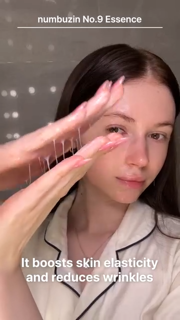 - [numbuzin 9, PRO TIP] Intensive wrinkle spot care routine with No.9 essence. Use it all over your face and apply it again on areas for wrinkles concerns – especially smile lines, frown lines, and forehead. Then, gently massage into the skin until it is absorbed.
