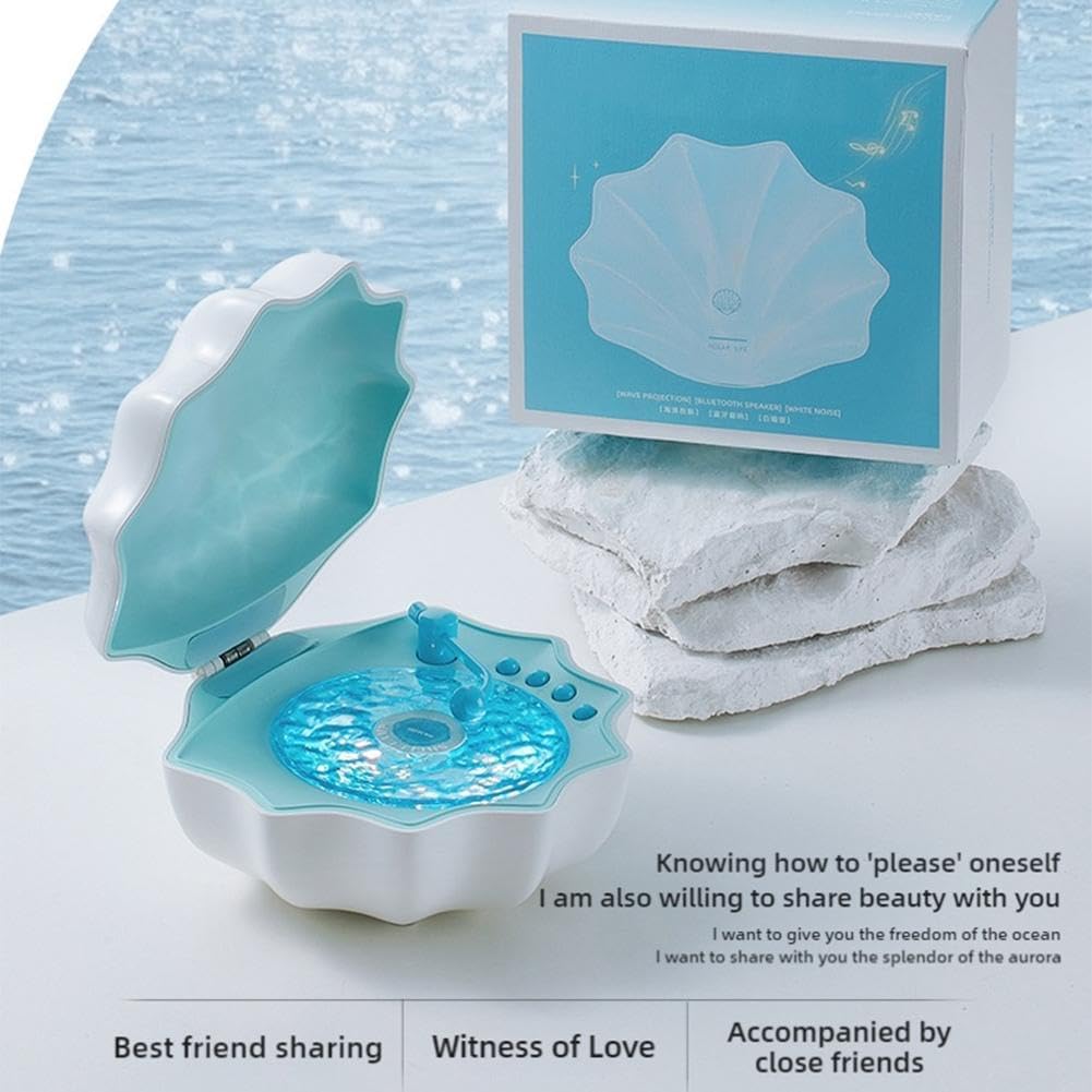 Shell Lamp with Bluetooth Speaker, Creative Ocean Wave Projector Shell Light, Waves Retro Bluetooth Vinyl Record Player, Night Lights Bluetooth Speaker, Bluetooth Desktop Speaker for Bedroom, Table Decor.