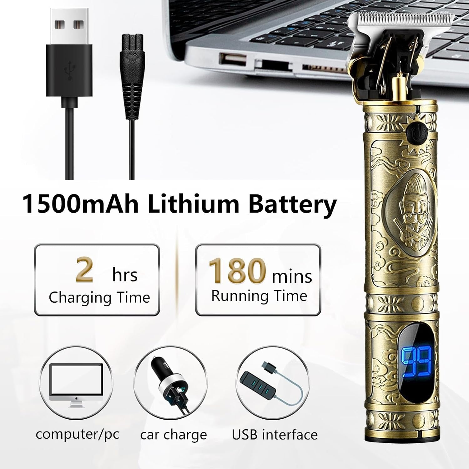 YACD D-044 Cordless Hair Clipper. Affordable elegant metal body, professional stainless blade, USB charging, 120-min runtime.